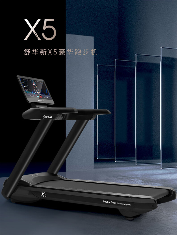 舒华X5 Pro豪华智能跑步机采用全新舒华跑步机系统,搭载21.5寸大屏,内置九种运动程序,包括场景跑、在线约跑和一键体育考试等内容,亦有教练在线科学指导和比赛互动,可在线升级,历经耐久性测试,让您使用更安全,双跑台设计,全减震系统,核心动力采用F级耐高温马达,5.0HP峰值马力,提供源源动力,让您享受每一次畅跑体验。